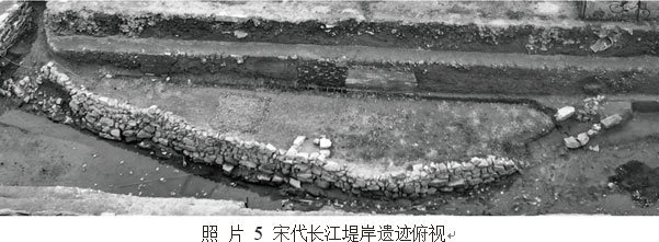 此外,在清代堤岸对应码头的位置,有明 显的 石块封堵 迹 象 ,长5. 4 米、宽约1 米、残高1. 6 米。由此推测,清代早期码头仍在使用,晚期由于长江淤涨加速江水畏缩,使码头失去功能,于 是将码头开口封堵成墙与清代堤岸融为一体(照片7 )