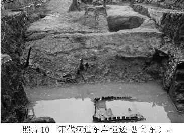 位于镇屏山下西南侧,大致呈东西走向,距地表深约2. 4 米,海拔约5. 4 米。河道:上宽下窄呈覆斗形,上口宽约10 米,下口宽约6 米。河道山河岸、河道淤土两部分组:成(一)河岸叠压明代地层下,土色黄,土质紧硬,坡度70° , 岸坡上设木板、木桩支护(照1片0) 。