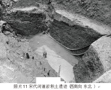 (二)河道淤土分为 二层 。淤1 层 :距 地表深 3, 4 2 米 ,厚1. 2 米,土色 褐 黑,土质略紧,泥沙 性,有淤积 层次 现象,含较多木炭灰、腐植物、碎砖瓦及大量宋代陶瓷等遗物。淤2 层:距地表 深 4. 2 5. 1 米,厚 0. 9 米,土色 褐黄,士 质较紧 ,沙 性,有淤积层 次现象 ,较纯净 ,含 少晕 宋代遗物 。淤 2 层之下为 黄褐色沙土 ,纯净 ,淤积迹 象明 显,属江淤士(照片11) 。