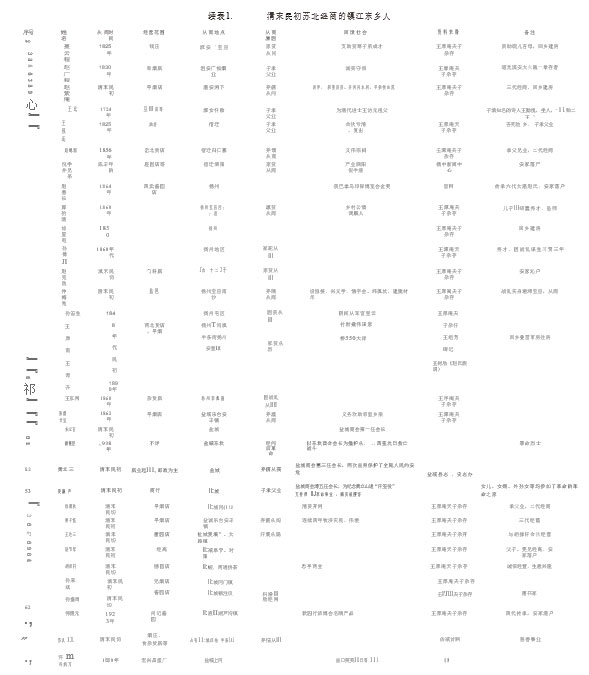 从表1 中可以看出,东乡商人的店业全部都是家庭和家族经商世家性质的 ,他们大多是有一定文化程度的读书人,有一部分是因为科举无望或因家贫、入仕无门的,转向经商之道。 在苏北的分布上以南通、盐城、泰州、淮安为多,其他还有扬州、宿迁和连云港等苏北各市。经营项目主要包括烟业、酱园业和南北货及油坊等。近 1/ 5 的东乡商人历经几代人经商后就在苏北安家落户了,所以至今许多东乡亲戚留在苏北各地很常见。(见表l 及续表)