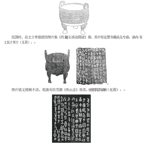 清谢启昆《焦山鼎铭考跋》清王昶《焦山鼎铭后记》 清吴云《周鼎铭考释》